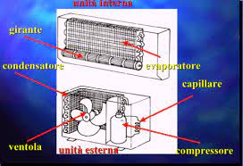 Invertendo il flusso del gas con delle particolari valvole predisposte (pompa di calore), possiamo ottenere in inverno, il riscaldamento di un ambiente utilizzando la funzione del condensatore.