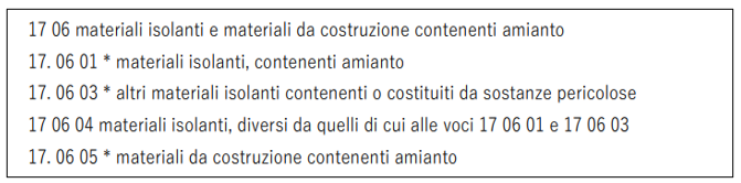 Per rifiuti pericolosi il codice termina con un asterisco “*”.